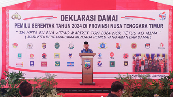 “Untuk itu, demi mereduksi potensi kerawanan pada setiap tahapan pemilu 2024, mewujudkan penyelenggaraan pemilu yang berintegritas dan legitimatif, membangun kesadaran moral dari seluruh peserta pemilu dan memberikan edukasi politik kepada masyarakat, Kepolisian Daerah Nusa Tenggara Timur menginisiasi kegiatan deklarasi pemilu damai dari 18 partai politik peserta peserta pemilu yang pada hakikatnya bertujuan untuk menciptakan suasana pemilu yang sejuk dan kondusif saat dan pasca pemilu serentak tahun 2024.” Jelas Johny.