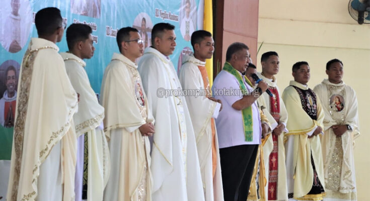suararakyatmedia.dking.id – Penjabat Wali Kota Kupang, Fahrensy Priestley Funay, SE., M.Si menghadiri acara misa pentahbisan imam baru Keuskupan Agung Kupang di Gereja Katolik Sta. Maria Assumpta Kupang, Rabu (18/10). Para diakon ditahbiskan secara langsung oleh Uskup Agung Kupang, Mgr. Petrus Turang yang di damping oleh beberapa Pastor. Perayaan ekaristi pentahbisan diikuti oleh keluarga para diakon yang ditahbiskan serta umat Katolik Paroki St. Maria Assumpta Kupang yang dimulai pukul 09.00 wita. Setelah perayaan ekaristi, acara dilanjutkan dengan ramah tamah yang berlangsung di aula paroki Sta. Maria Assumpta.